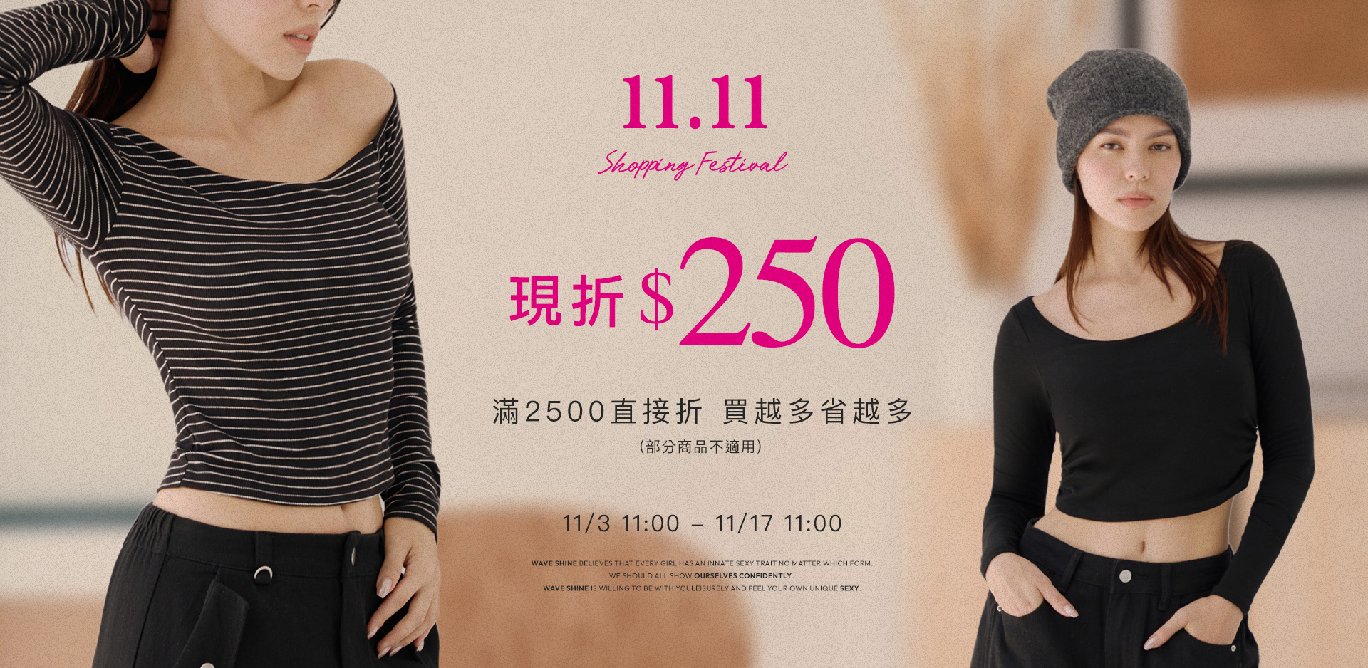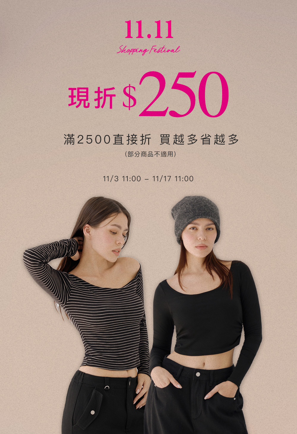 🎉雙11限時開跑!會員專屬折扣再加碼💥滿2500現折250!