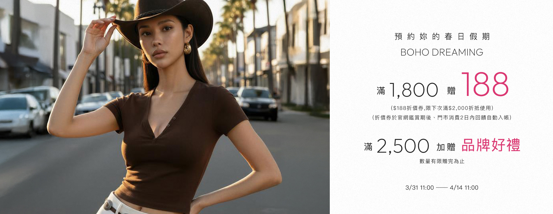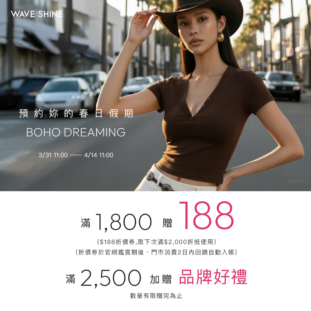 Boho Chic 音樂季穿搭新品上市 🌿 全館滿額$1,800送$188折價券