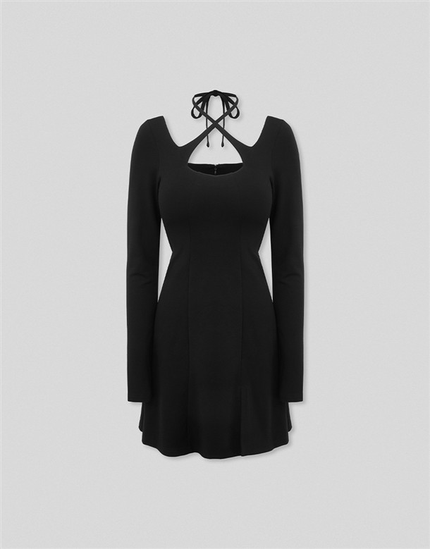 挺波衣-交叉繞脖設計連身bra短洋裝