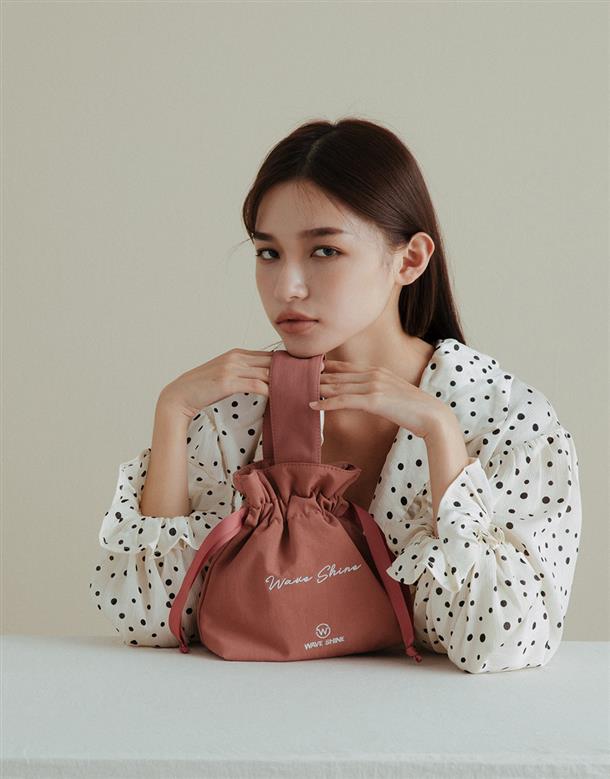 浪漫的草寫立體刺繡LOGO,兼具實用及簡約時尚的萬用束口袋。