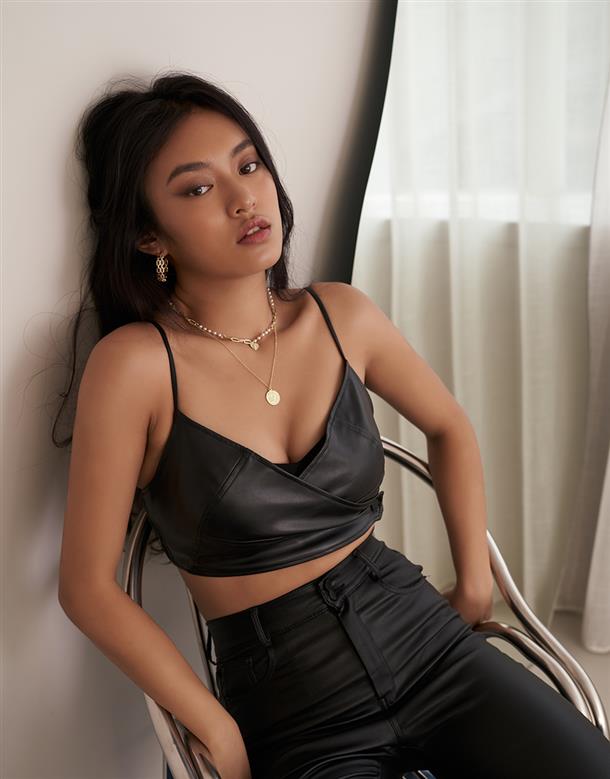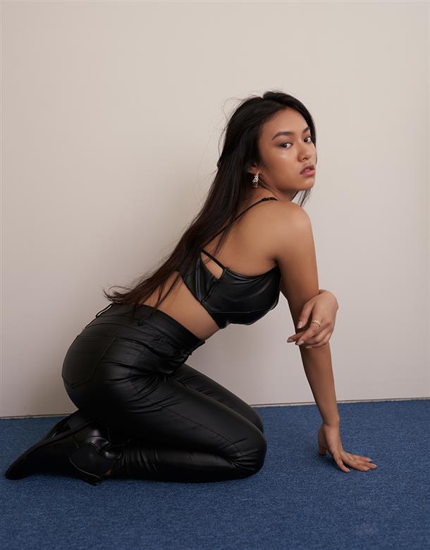 1.性感交疊美背皮料附bra的上衣單品。