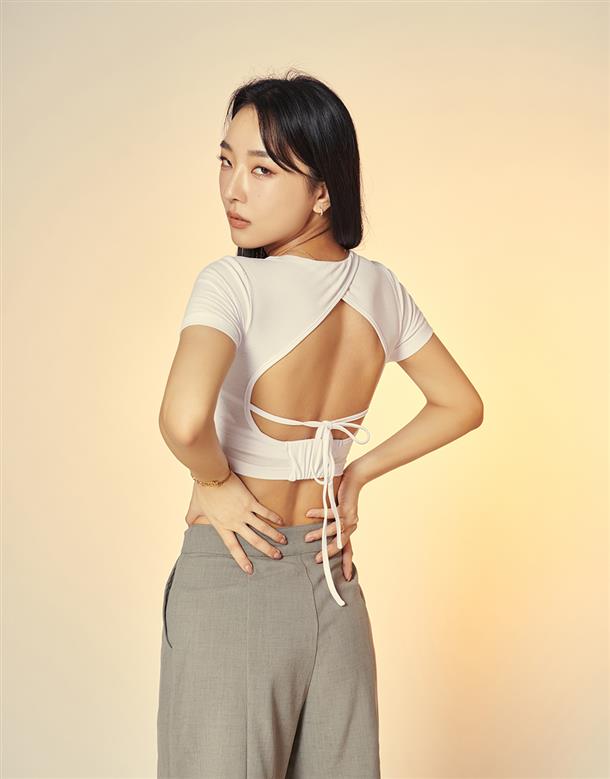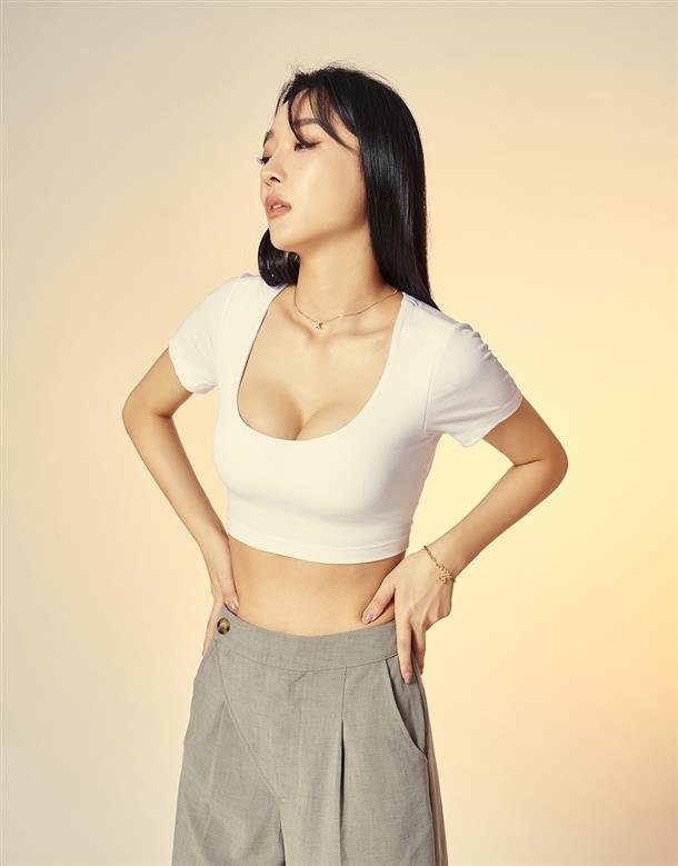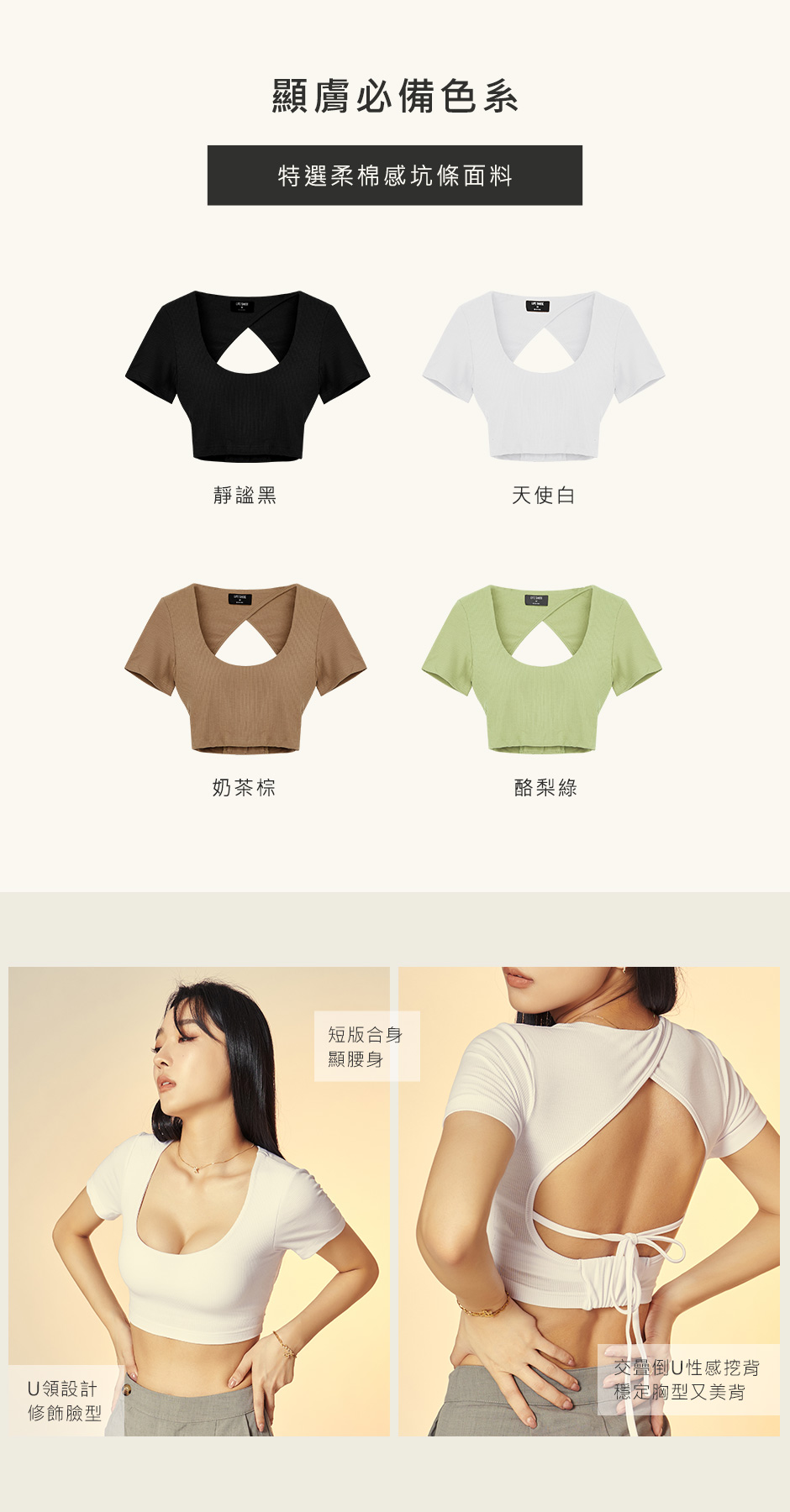 1.簡約U領短袖上衣,心機微辣大挖背。