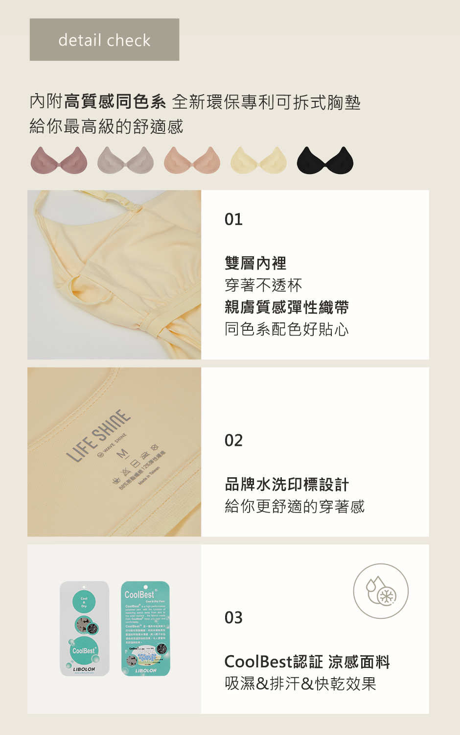 3.同面料色可折式胸墊,高質感又輕鬆清洗。