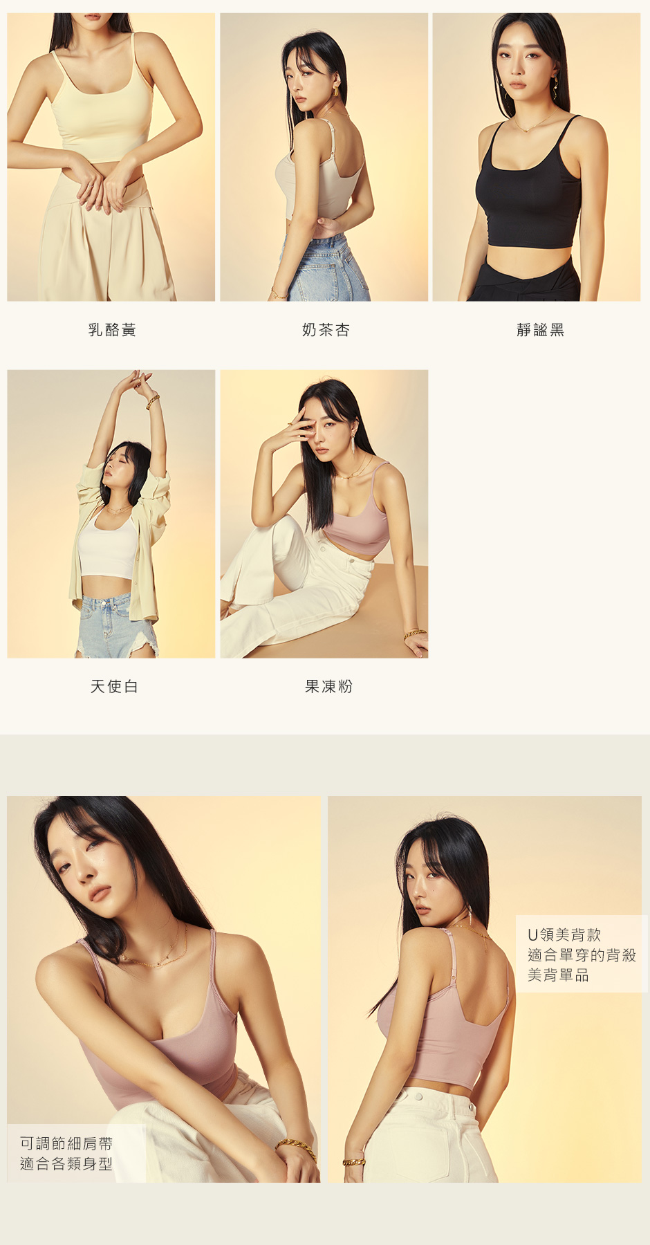 1.U領美背bratop,單穿或層次穿搭必備單品。