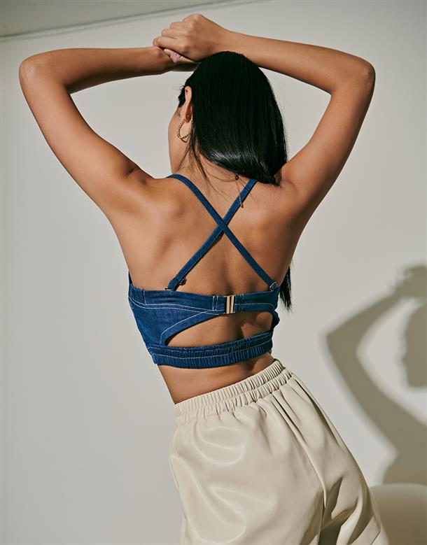 2.可調節肩帶,後彈性帶設計和金色扣環,適合各種身型。