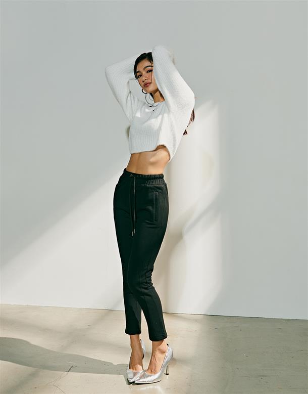 1.修身遮肉束口褲型,併縫接縫車法不壓肉。