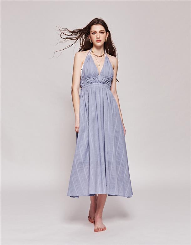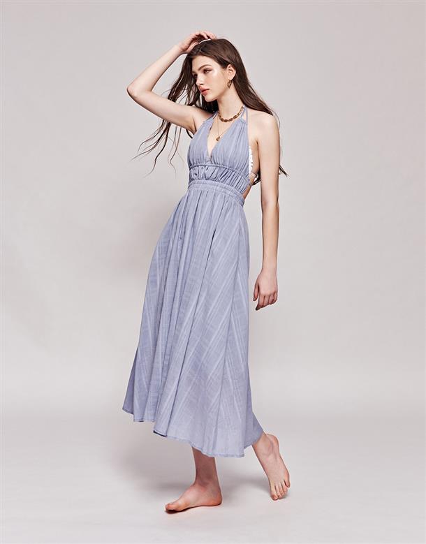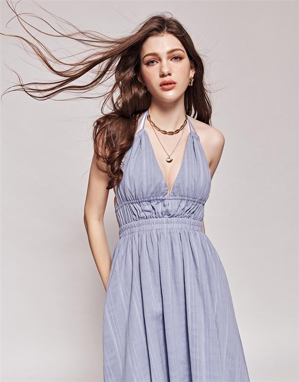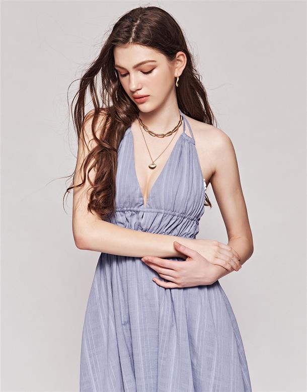 3.深V領型修飾臉型,裙身傘擺設計更顯瘦。