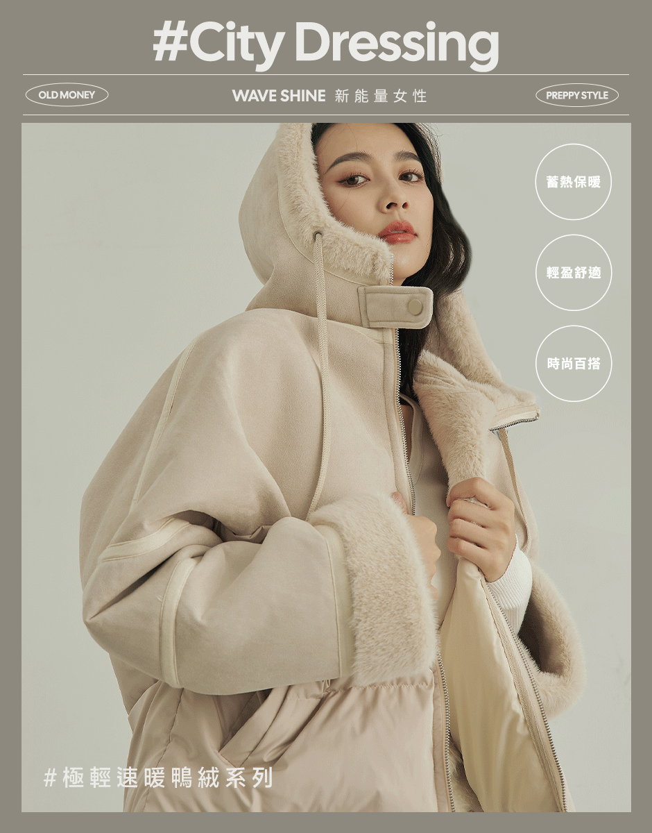 3.內填90% 白鴨絨填充拼接設計簡約不單調。