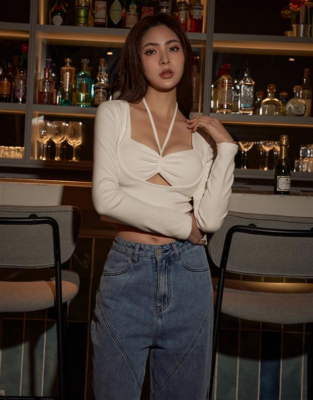 1.假兩件繞頸扭結款式,自帶罩杯設計,輕鬆穿出聚焦美波效果。