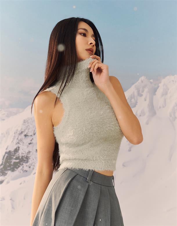 1.高領修身背心款式,自帶罩杯設計,輕鬆穿出時髦日常感。