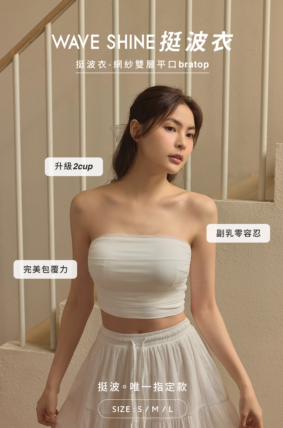 3.各尺碼專屬罩杯,S~M為27mm飽滿型胸墊;L為15mm美波型胸墊。