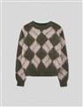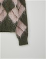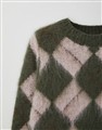 保暖長毛馬海毛紗線,中短版版型,撞色配色菱格造型,敏感肌建議內搭長袖TEE更舒適