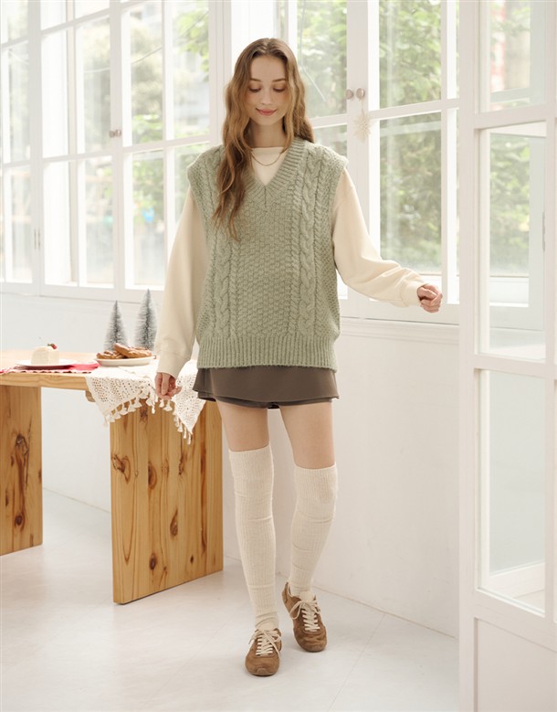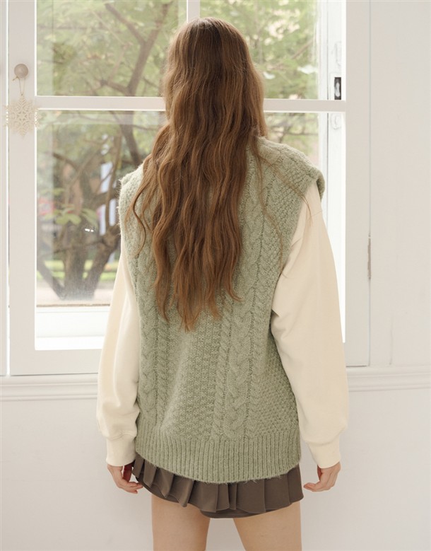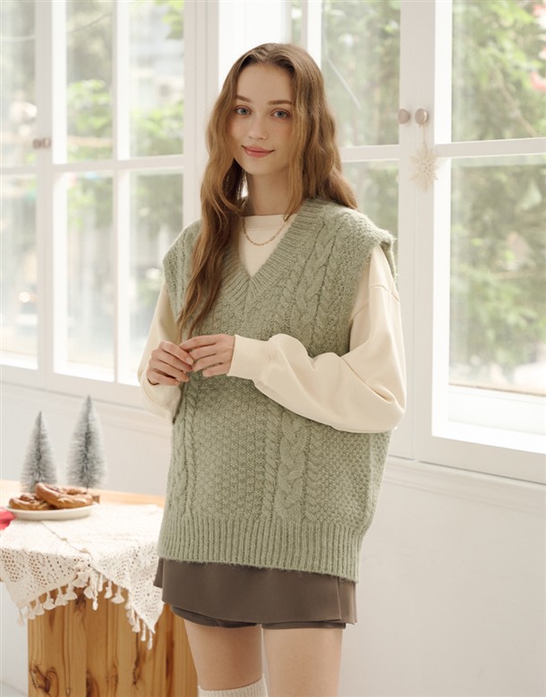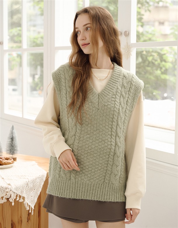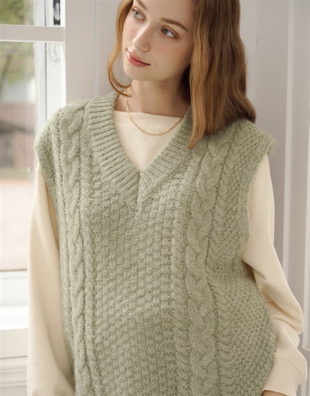 蓬鬆親膚馬海毛紗線,V領寬鬆版型,麻花編織設計細節