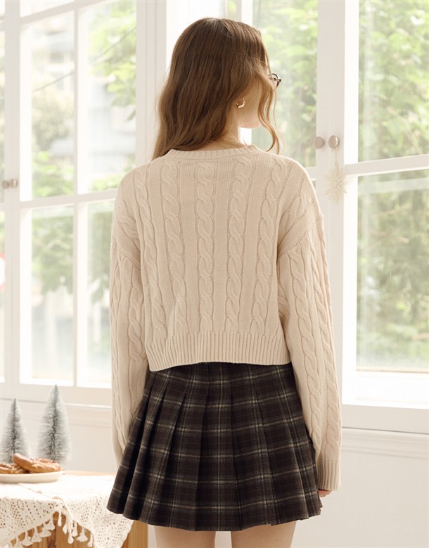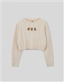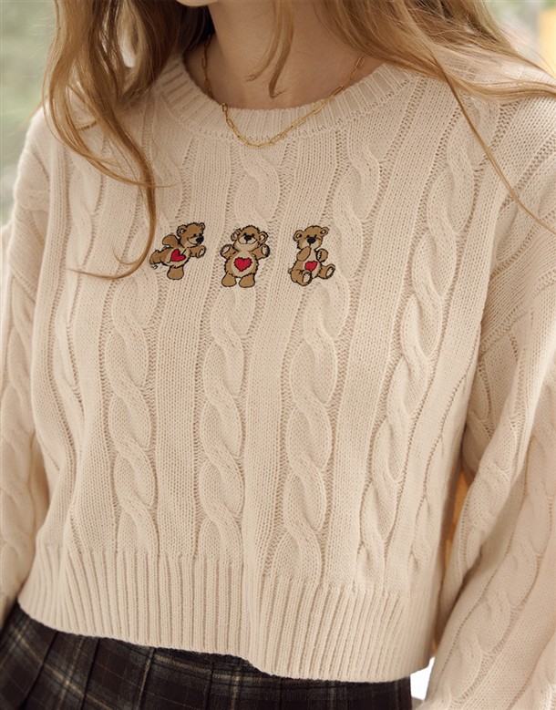 Suzy's zoo熊熊電繡,舒適親膚仿羊絨紗線,版型中短版,經典麻花織紋,俏皮熊熊排版
