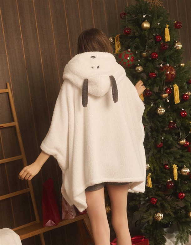 -穿著衣長為膝上,居家療癒又保暖。