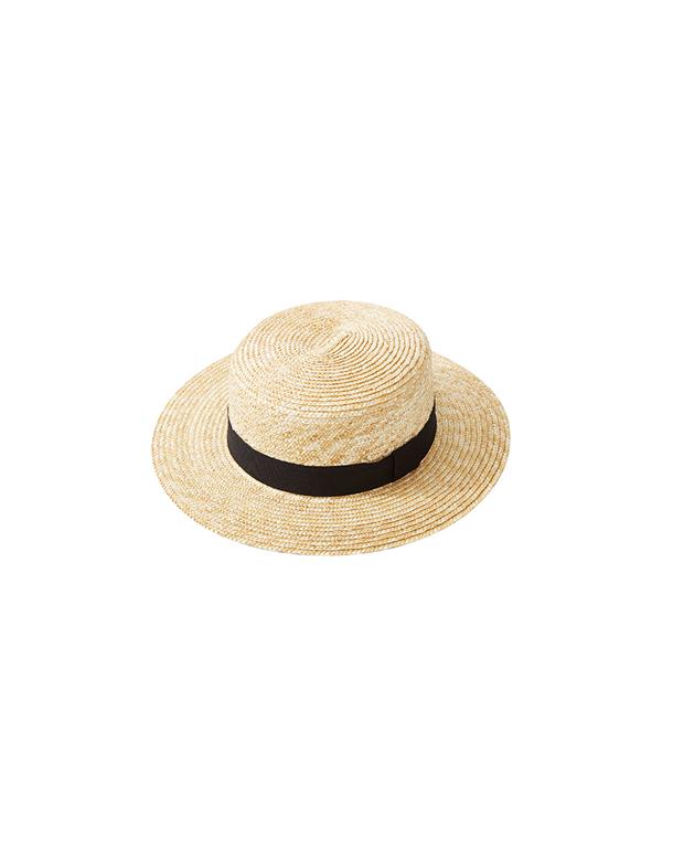 內圍可調整,平頂帽使用麥辮1.2cm寬編織而成,側搭黑色寬織帶。
