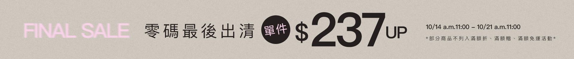 零碼最後出清!單件$237up
