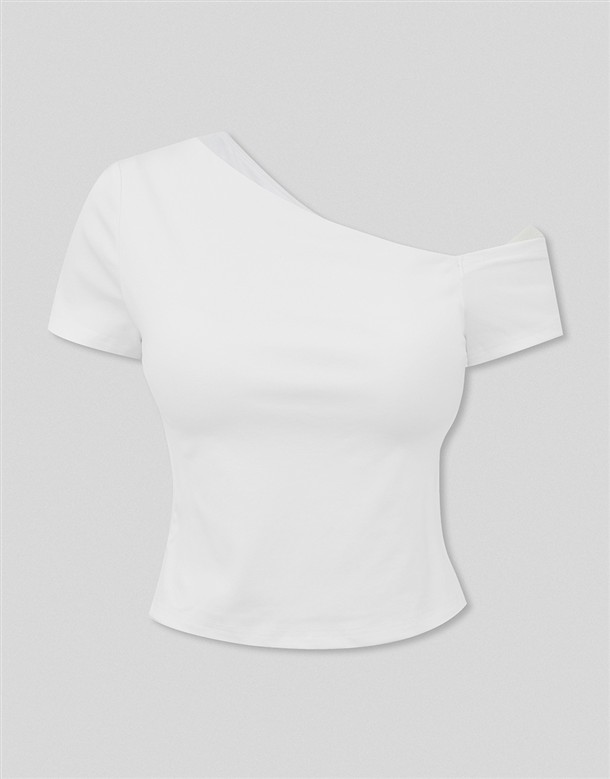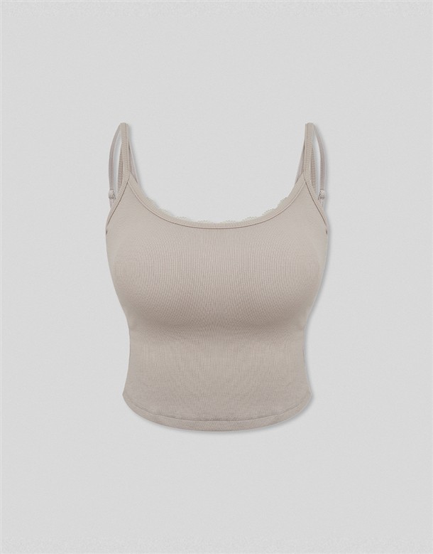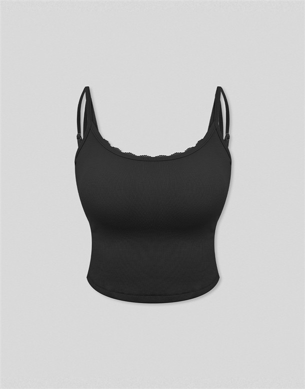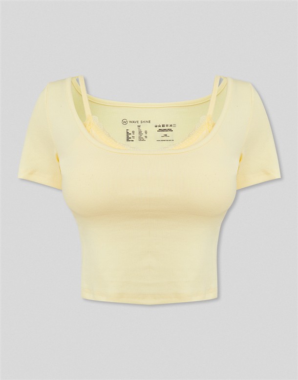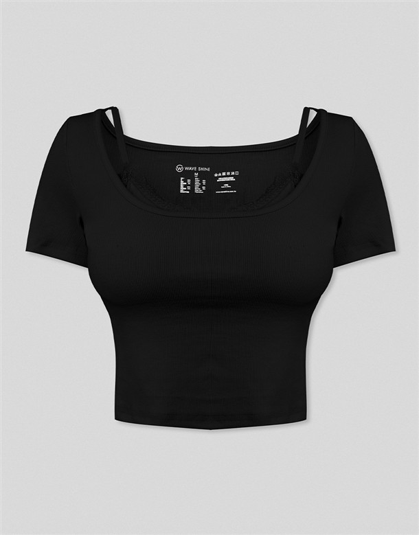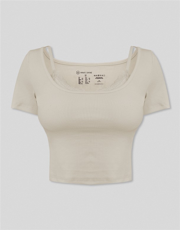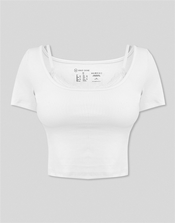 挺波衣-假兩件蕾絲U領短袖bra上衣